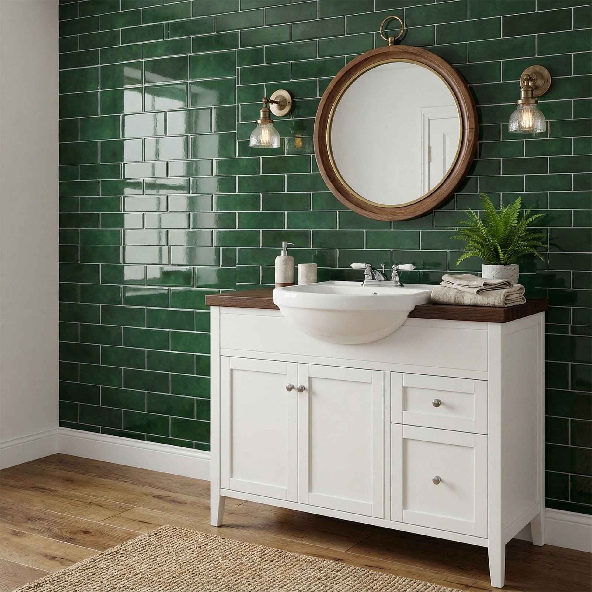 Vert Foncé - Carrelage quinconce autocollant