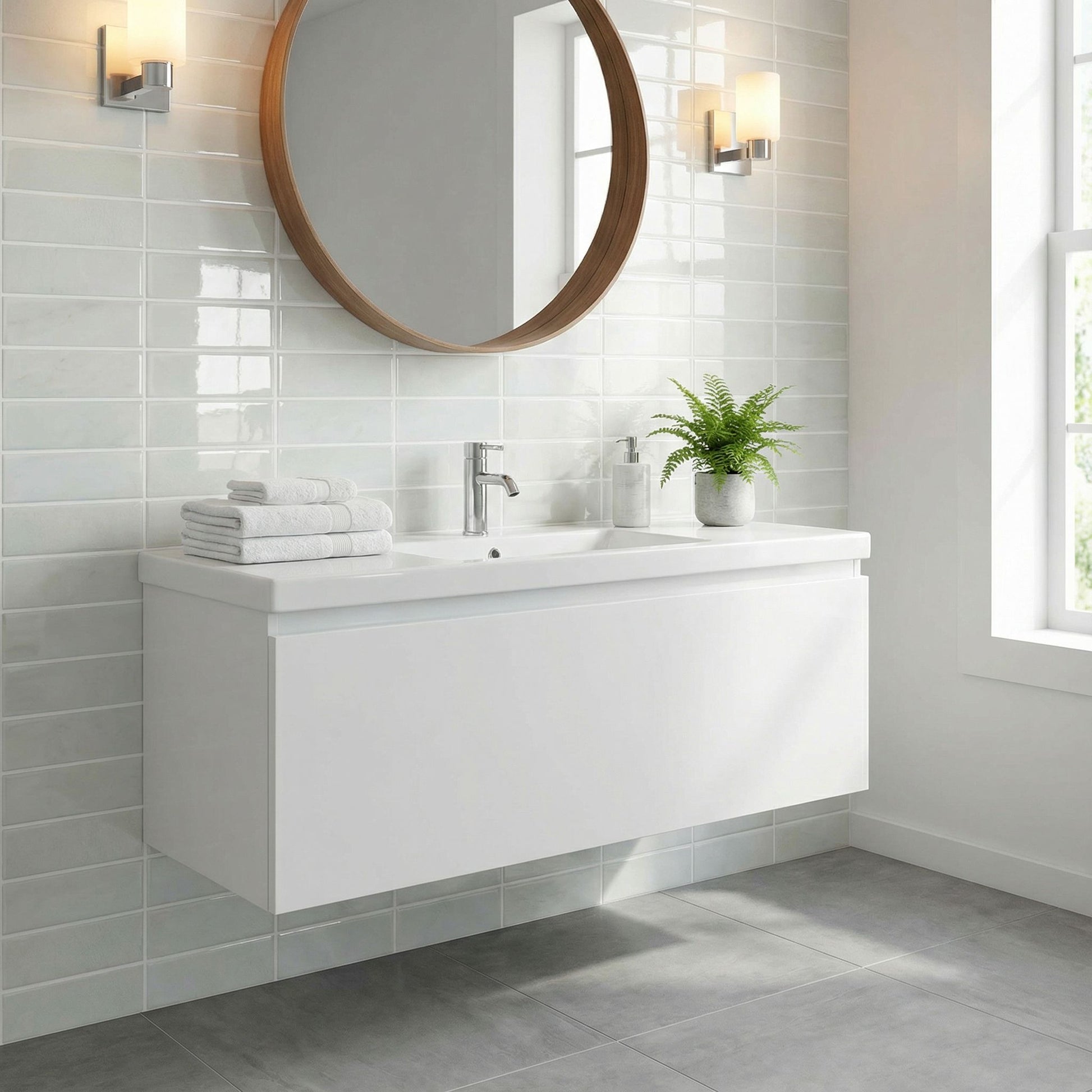 Blanc - Carrelage quinconce autocollant